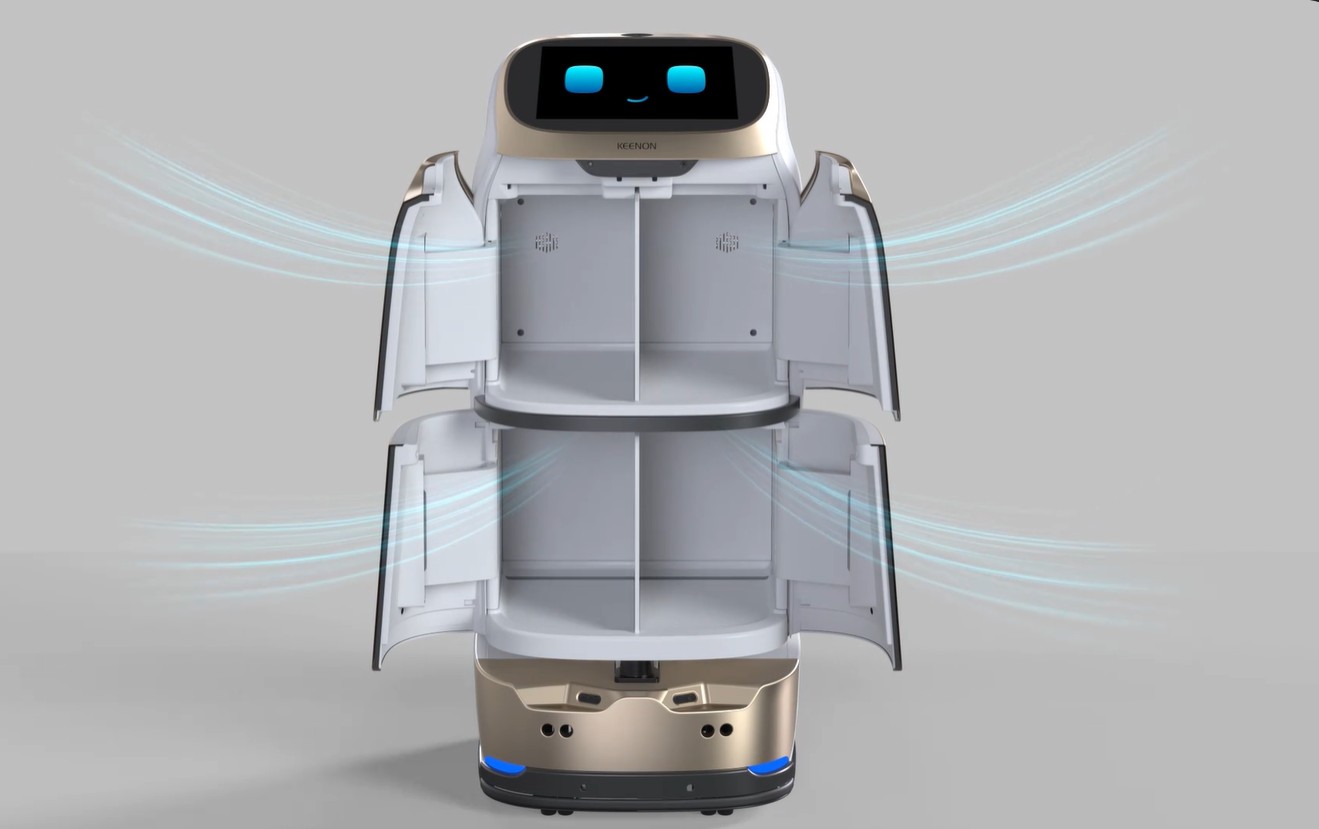 Automatic doors and ventilation ensure contactless, hygienic dish service, prioritizing privacy and spill prevention.