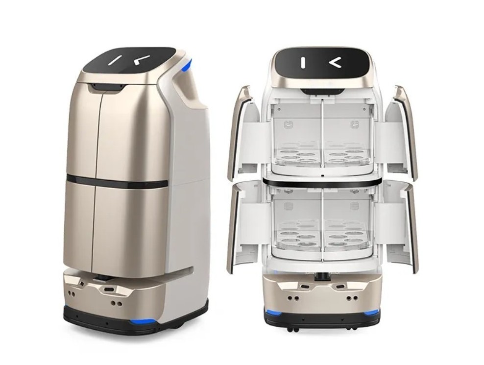 Automatic doors and ventilation ensure contactless, hygienic dish service, prioritizing privacy and spill prevention.